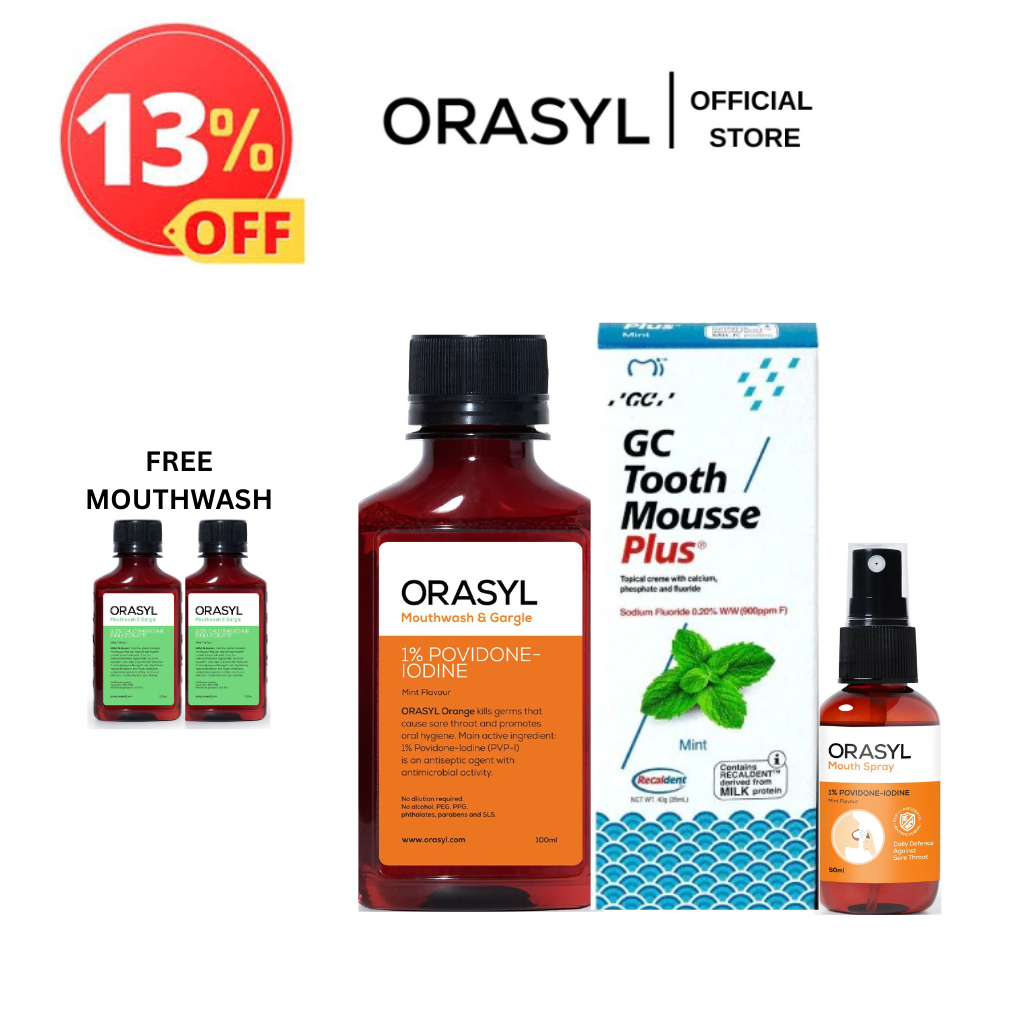Oral Wellness Kit-100ml Orasyl Orange & GC Tooth Mousse Plus Mint & 50ml Orasyl Orange Spray