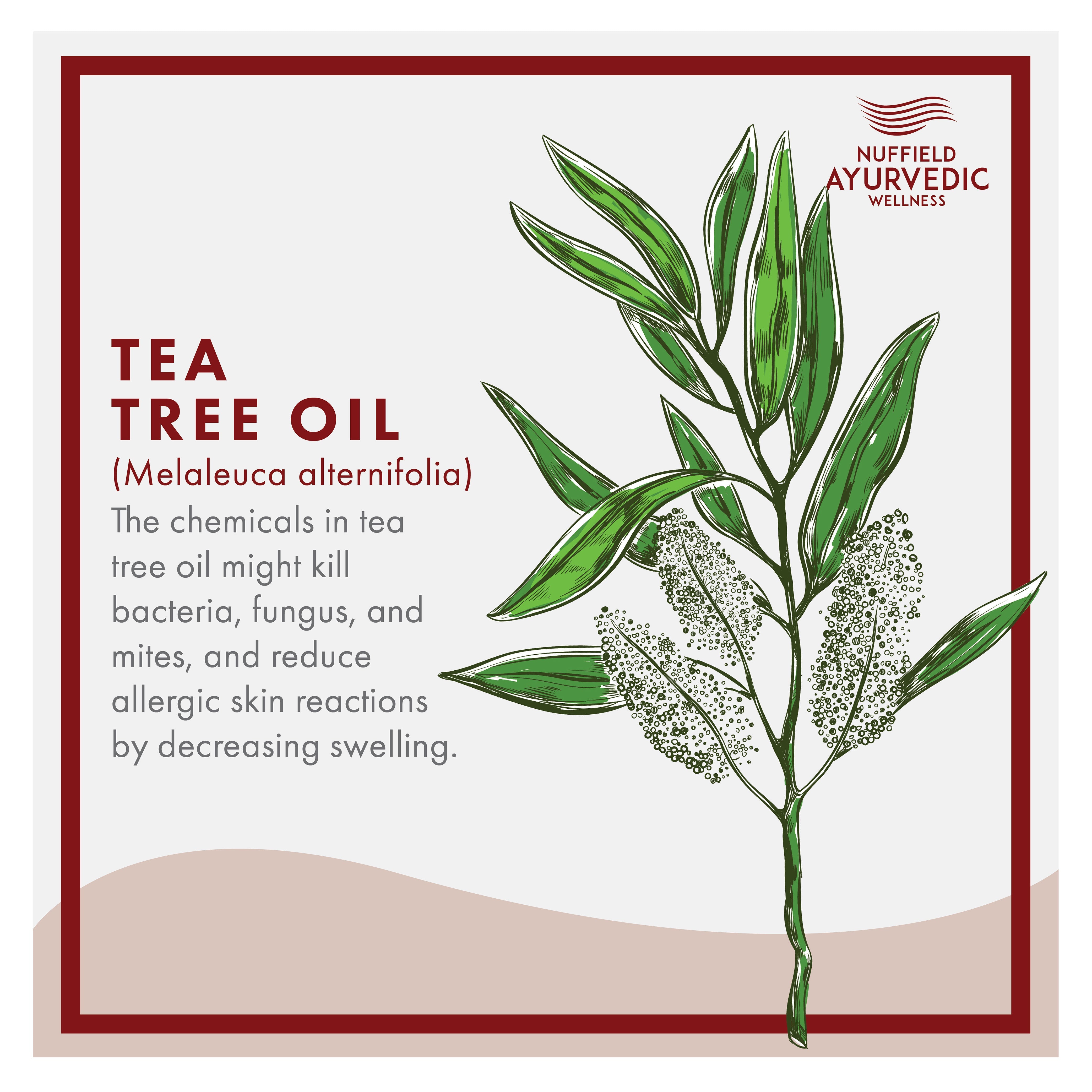 The chemicals in tea tree oil might kill bacteria, fungus, and mites, and reduce allergic skin reactions by decreasing swelling.