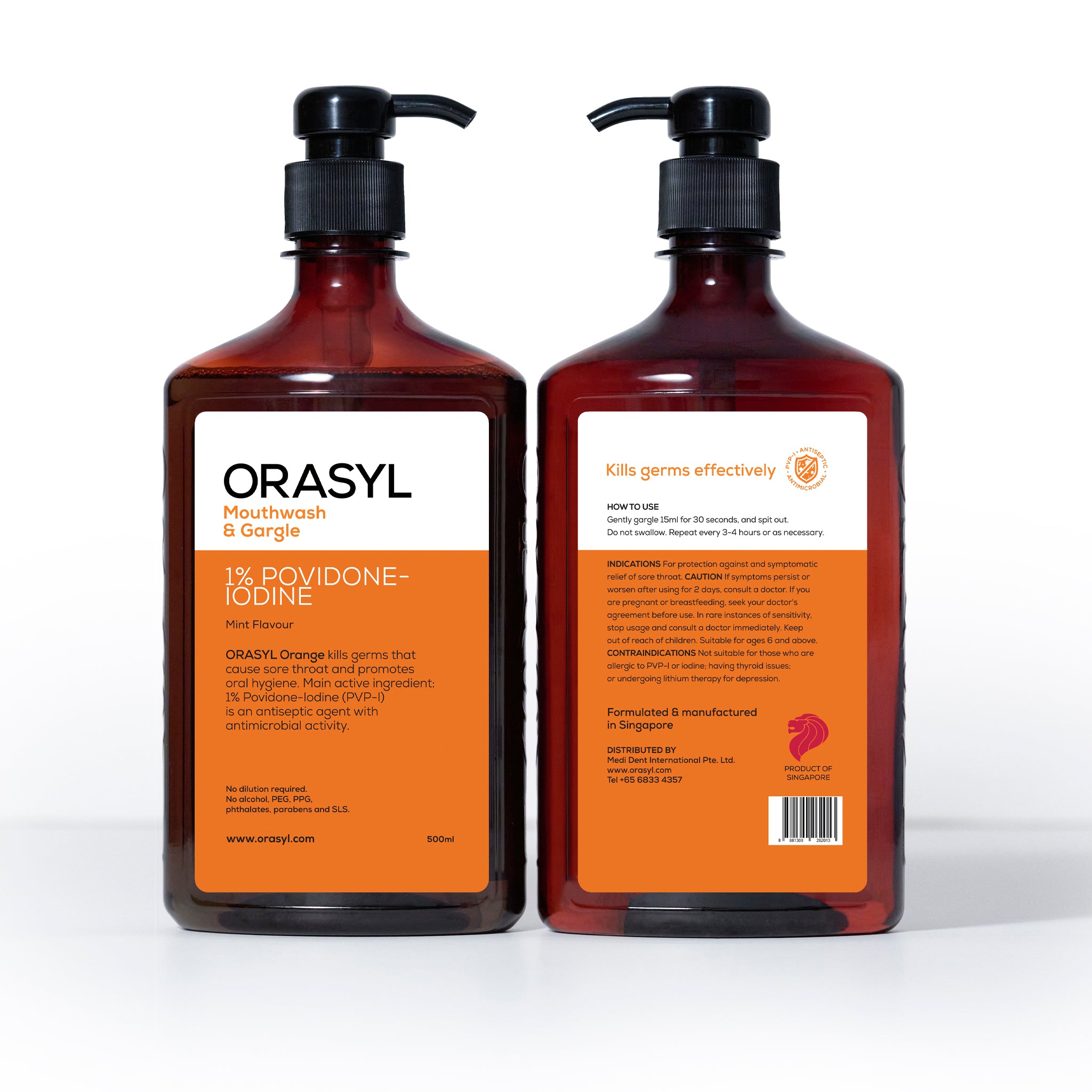 ORASYL ORANGE - 聚维酮碘漱口水和漱口水 (500ML)